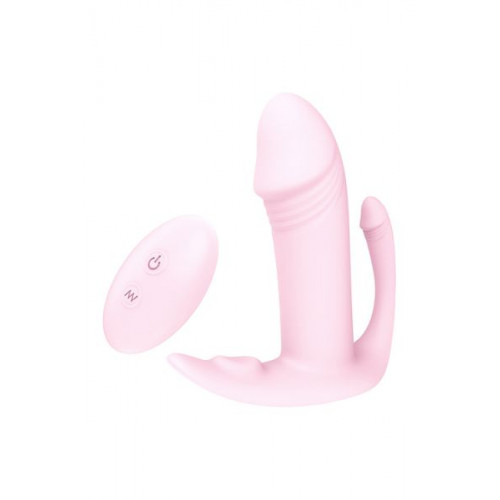Three point stimulator with wireless remote controller. The removable powerful vibrator offers 9 different patterns of vibration and is situated in the penis shaped shaft. The vibrations are also spread to the 2 external ticklers for anal and clitoral stimulation. Waterproof. Rechargeable.
