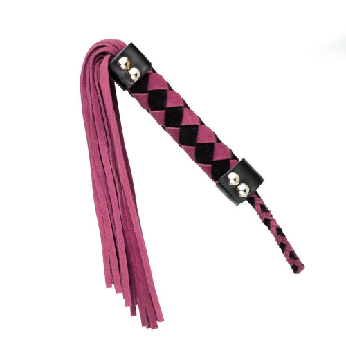 Флогер розово-черный, замша, ручка ромб