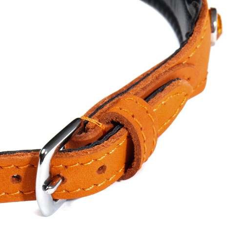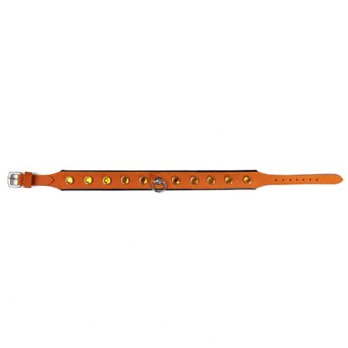 Ошейник со стразами тонкий DS Fetish кожаный, оранжевый (Голландия)