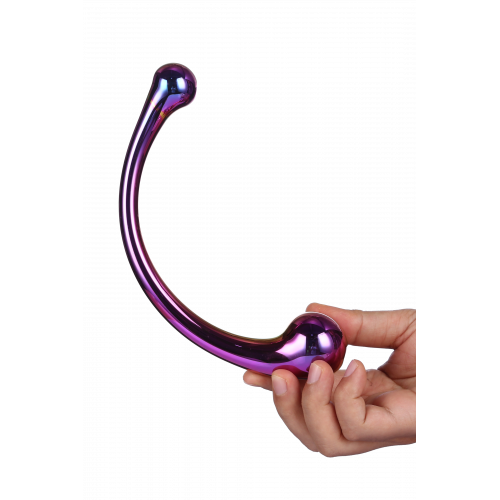 Цей вигнутий фалоімітатор-паличка виготовлений з боросилікатного скла, яке є дуже міцним, непористим, гігієнічним і безпечним для тіла. Вигнута форма відмінно підходить для точної стимуляції, кінці у формі кулі ідеально підходять для досягнення точки G і для зміни тиску і відчуттів. Воістину універсальний і по-справжньому захоплюючий, з гламурним зовнішнім виглядом і квітами мильних бульбашок.