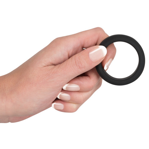 Широке і гладке ерекційне кільце чорного кольору. Виконано з високоякісного силікону з бархатистою поверхнею. Кільце легко одягається на пеніс, перешкоджає відтоку крові, ніж робить ерекцію більш сильної і тривалої. Діаметр - 3,8 см.