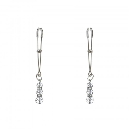 Тонкие зажимы для сосков с подвеской Feral Feelings - Thin nipple clamps, серебро/прозрачный