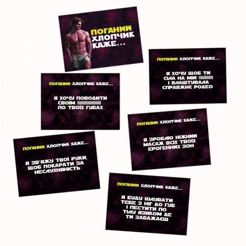 1. У вас есть две колоды карт с заданиями для развратной девочки и плохого мальчика.