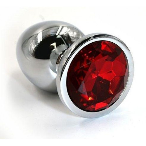 Анальная пробка металлическая серебристая Funny Steel с красным камнем, S