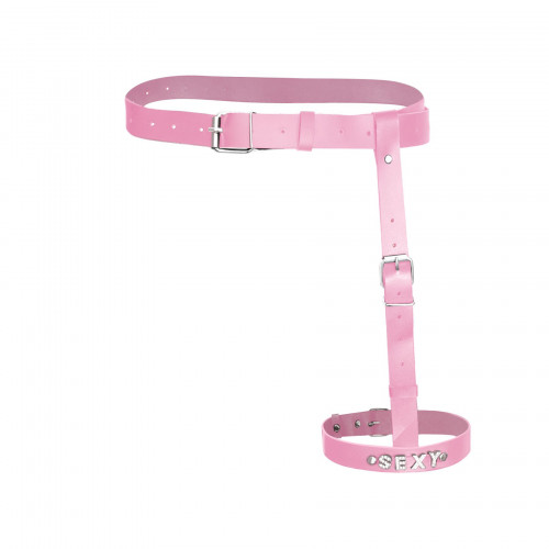 Гартер на ногу Art of Sex - Naomi с надписью SEXY, натуральная кожа, размер XS-2XL, цвет розовый