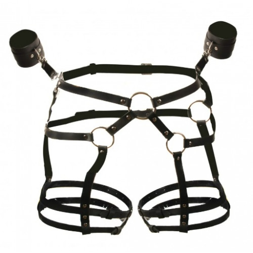 Гартеры с наручниками One Size G37.1, натуральная кожа, черные