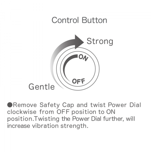 очень простое, интуитивно понятное управление с помощью ручки-регулятора: плавно поворачивайте ручку в одну или другую сторону, чтобы увеличить или уменьшить интенсивность вибрации;