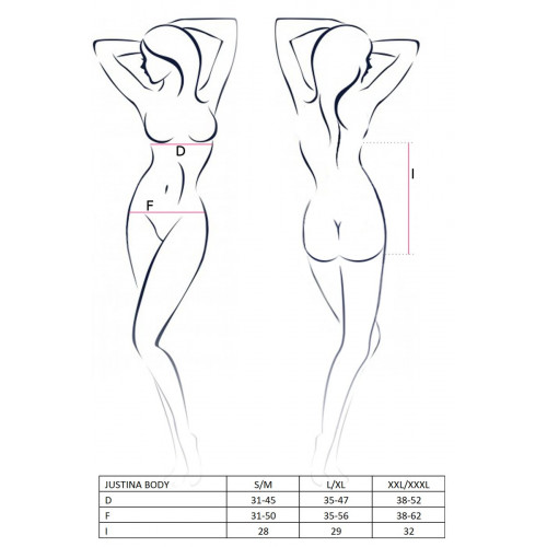 У нас ви можете купити еротичне боді passion erotic line justina body - неймовірно сексуальне білізна з фантазійним дизайном. Родзинка даної моделі - повністю відкрита груди в обрамленні тонких бретелей. Красоту та пишність груди підкреслює ніжне чорне мереживо з напівпрозорої оборкою. Ромбовидна вставка внизу живота декорована мініатюрним бантиком. Вона плавно переходить в стринги, тим самим акцентуючи увагу на стегнах та попці. Відчуйте себе спокусливою та бажаною в цьому еротичному боді.