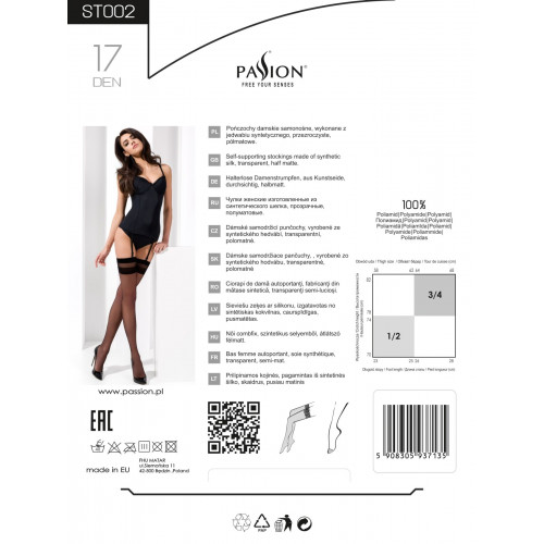 Додайте трохи кокетства до вашій повсякденного образом, купіть класичні панчохи під пояс з подвійний гумкою st002 3/4 bianco - passion. Красиво облягаючі панчішки, з подвійний резиночкою, підійдуть не тільки як деталь еротичного костюма, але та стануть чуттєвим доповненням до діловому костюму.