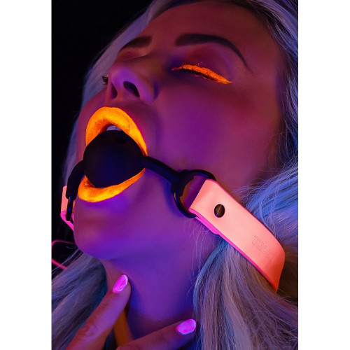 Кляп оснащен фосфоресцентными ремнями, которые создают светящийся в темноте эффект.