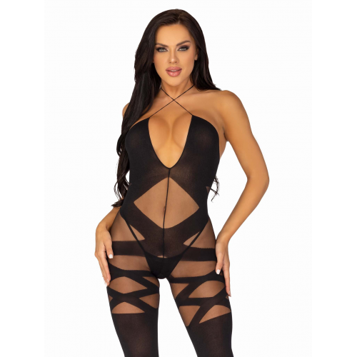 Покажіть, хто тут головний, у цьому спокусливому комбінезоні від Leg Avenue. Виконаний у непрозорому чорному кольорі, цей комбінезон має деталі імітації обгортання, кручену бретель на шиї та глибоке декольте. Незаперечно сексуальний, цей унікальний комбінезон з прозорими та непрозорими елементами ідеально підходить як доповнення до вбрання для романтичного вечора і легко перетворюється на зброю спокушання у спальні. (Трусики не входять у комплект)