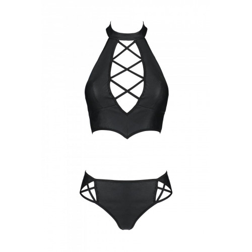Комплект з екокожи бра та трусики з імітацією шнурівки nancy bikini black xxl/xxxl - passion:.