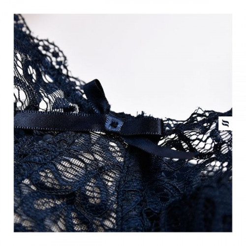 Чудовий сексуальний комплект темносинего кольори для романтичного вечора! він чудово підійде для стриманих жінок, які хочуть підкорити серце свого коханого. Комплект виконаний з м'якого з приємного до тіла мережива. ліф приковує увагу до груди, та підкреслює її форму з допомогою кісточок. Широкий пояс прикрашений мереживом для панчоха злегка прикриває сідниці, надаючи образом грайливості. Пажі на поясі та бретелі на ліфі регулюються, завдяки чому комплект можна легкістю підігнати по постаті.