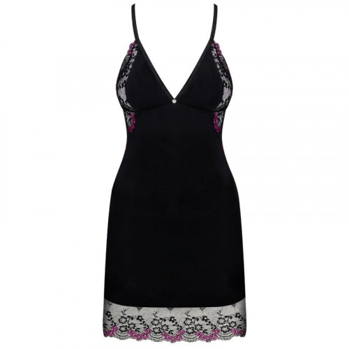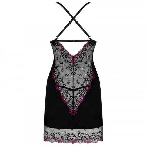 Чорний комплект з деталями включає сорочку та стринги. спокусливий мереживний виріз підкреслює спину. нестримний крій, підкреслює ваші переваги ідеальна посадка завдяки регульованим приємний, еластичний, облягаючий матеріал (90% поліамід, 10% еластан . obsessive означає натхнення для жінок.