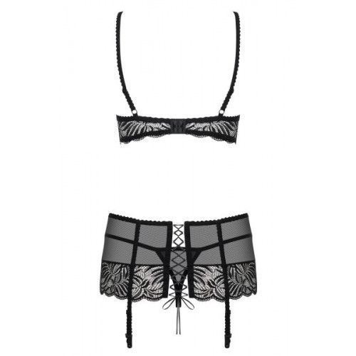 Класичне нижня білізна чорного кольори для тих, хто любить ніжне мереживо та сексуальний акцент в вигляді прозорого матеріалу, облягаючого стегна. Відчуйте м'якість чашок бюстгальтера на кісточках та насолоджуйтесь комплектом contica кожен вечір. Ви заслуговуєте того, щоб відчувати себе красивим та дивовижної, де б ви перебували, тому навіть не намагайтеся думати інакше. регульовані бретелі бюстгальтера - комфорт при носіння чашки бюстгальтера на кісточках регульована застібка на спині пояс для панчоха з атласом, шнурівка сзаду прозорий сітчастий матеріал мереживна оздоблення - елегантність та шик регульовані бретелі для панчоха в комплекті: бюстгальтер, пояс для панчоха та класичні стринги панчохи не йдуть в комплекті м'які та еластичні матеріали multistretch (90% поліамід, 10% еластан.