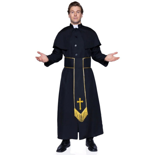 Освятіть святкову атмосферу з 2-детальним костюмом священика від Leg Avenue. Цей божественний чоловічий костюм на Хелловін включає в себе рясу священика з пришитим плащем та підходящим поясом із хрестом. (Штани в комплект не входять)
