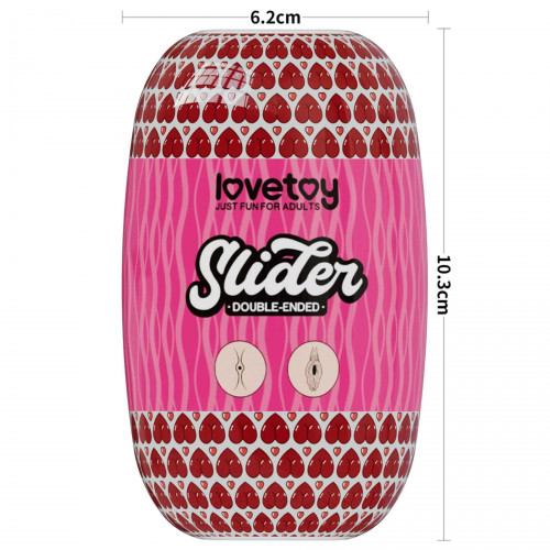 Оригінальний двосторонній мастурбатор у яскравому футлярі. З однієї сторони піхва з вузьким входом та реалістичними статевими губами, з другої - анальний вхід. Всередині іграшка має вузький наскрізний канал, який оснащений багатим внутрішнім рельєфом у вигляді численних пухирців та ребристостей, що розміщені під різними кутами нахилу для більш гострих відчуттів під час стимуляції. Мастурбатор щільно охоплює статевий член, гарантуючи приємне прилягання і задоволення. Зовні футляр прикрашений зображенням привідкритих губ, що додає аксесуару пікатності та пробуджує найпотаємніші фантазії. Довжина загальна - 10.3 см, діаметр каналу - 2 см.
