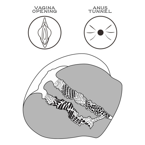 Вагінальний тунель спеціально розроблений із набором пухирців, які ласкаво масажують вас під час глибокого проникнення. Анальний отвір трохи вужчий та повний численних вигинів для додаткових стимулюючих відчуттів. Ви можете покласти цю красуню на рівну поверхню або тримати її близько до себе, досліджуючи обидва її інтимні проходи.
