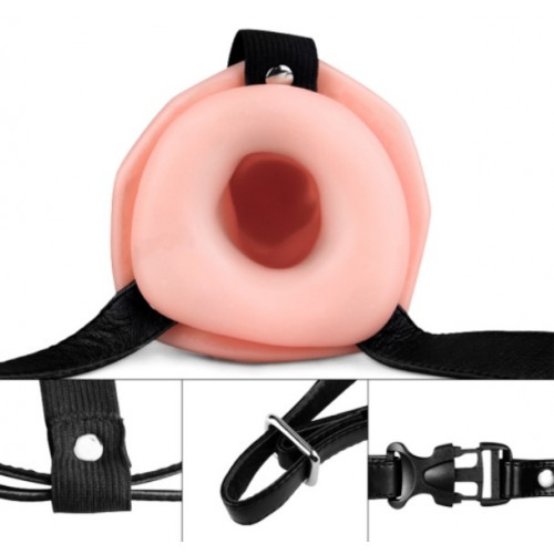 Порожній страпон реалістичною форми і кольору - має гладку головку і злегка зігнутий стовбур з венозної сіткою. Виготовлений з м'якого якісного матеріалу, що нагадує справжню шкіру. Кріпиться на регульованих ремінця, за допомогою яких можна підігнати під будь-який розмір. Оснащений вбудованим віброелементами з 10 функціями вібрації і виносним пультом управління. Можна використовувати як жінкам, так і чоловікам. Довжина фалоса - 16 см.
