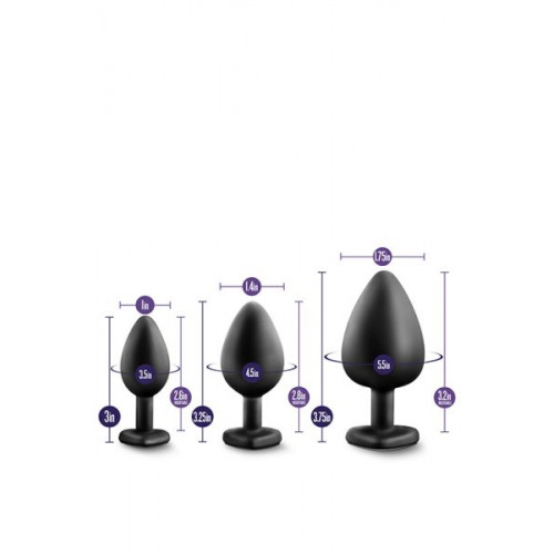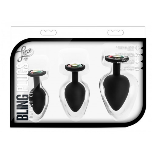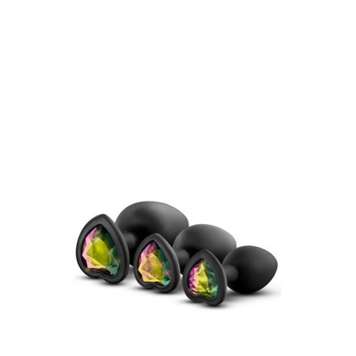 Designed with a heart shaped base and a beautiful ruby rainbow colored faux gemstone. Training kit. Comes with 3 sizes, small, medium and large. Great for getting acqyainted with anal play. Flared, so the plug stays securely inserted. Body safe satin smooth silicone.