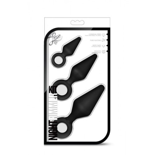 Anal training kit with 3 sizes plugs; small, medium and largegreat for getting acquainted with anal playconvenient loop handle for easy removal. Made of pure silicon with a smooth satin finish.