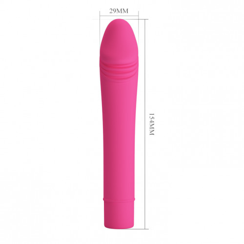 Водонепроникний вібратор з реалістичним зовнішнім виглядом - яскраво вираженою голівкою, складками і прямим стовбуром. Виготовлений в рожевому кольорі з високоякісного бархатистого силікону, приємного на дотик. 10 функцій вібрації регулюються в підставі. Довжина - 15,4 см, діаметр - 2,9 см.