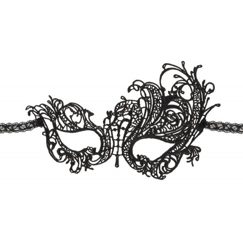 Красива ажурна маска з отворами для очей. Виконана в чорному кольорі з щільного Розкішна вишитого мережива з візерунками. Фіксується за допомогою зав'язок ззаду. Відмінний аксесуар для інтимних ігор або костюмованої вечірки.