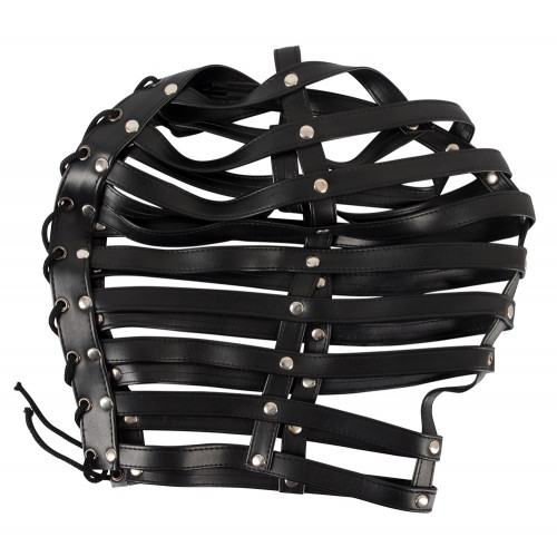 Маска на голову чорного кольору. Зроблена з шкіряних смужок, з'єднаних між собою металевими заклепками. Розмір універсальний, ззаду розташована фіксує шнурівка.