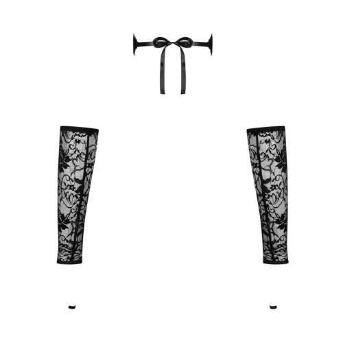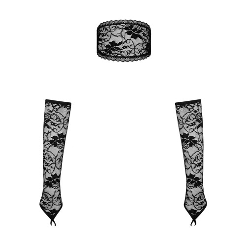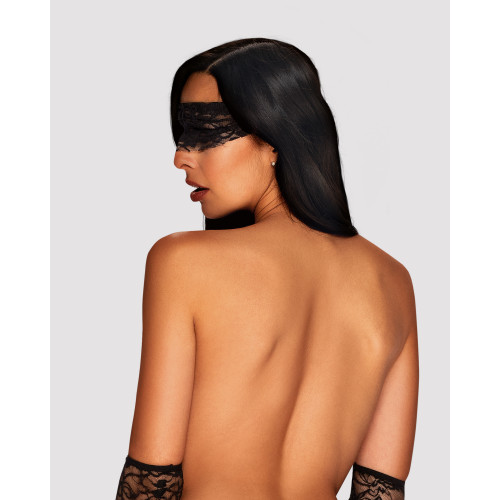 - кокетлива, чорні рукавички і маска з квіткового мережива