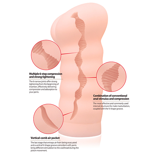 Цей мастурбатор, виготовлений з високоякісної кібершкіри, не лише відтворює відчуття дотику до справжньої шкіри, але і забезпечує максимальний комфорт під час використання. Ви зможете насолоджуватися вишуканим реалізмом у кожному руху, завдяки докладно відтвореному анусу з характерними складочками та внутрішньою рельєфною структурою, що імітує анальний канал.