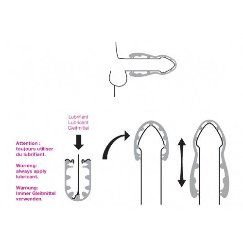 Використання змащення на водній основі, не тільки полегшить ковзання у врем'я фрикцій, але та, в поєднанні з презервативом, подовжить термін експлуатації мастурбатора marc dorcel sex shot xtra.