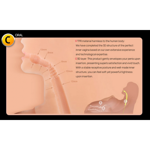 Матеріал кібершкіри надзвичайно м'який та ніжний, імітуючи справжню людську шкіру. Легкий у догляді, мастурбатор можна мити в мильному розчині та присипати тальком. Влагаліще має сквозну структуру, що спрощує очищення.