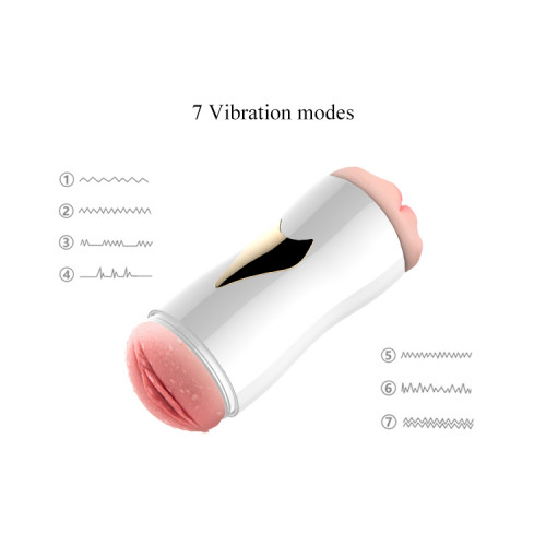Інструкції: 1 Натисніть і утримуйте кнопку «o», щоб увімкнути мастурбатор. Він буде вібрувати 1 секунду і перейде в режим очікування. Ще одне коротке натискання активує перший режим вібрації. Кожне коротке натискання змінює функцію масажера, перемикаючись між 7 режимами вібрації. 2 Після підключення навушників коротко натисніть кнопку»m"