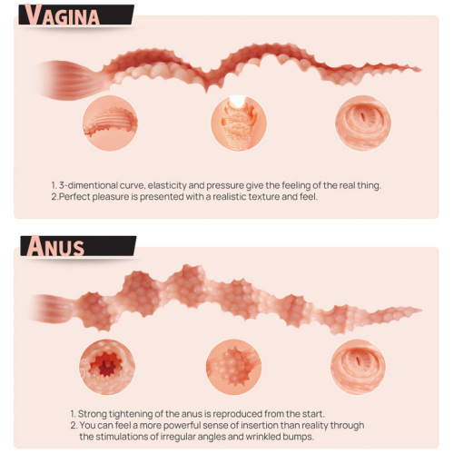 Особливість конструкції полягає у створенні компресійного та адсорбційного ефектів завдяки закритому кінці, що імітує відчуття реального людського тіла. Матеріал мастурбатора — м'якший за шкіру, дозволяє досягти найвищої реалістичності відчуттів. Також внутрішня структура включає в себе нуби та гребінці, які максимізують стимуляцію, імітуючи аналогічні структури реальної вагіни.