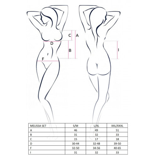 Шикарний комплект з найтоншої сітки та ажурного мережива чарівно виглядає та на мініатюрних жінок, та на розкішних дам. Трусикистринги та топ з мереживними чашками чудово підкреслять переваги та допоможуть відчути себе сексуальної спокусницею. Спробуйте купити комплект еротичного білизни passion melissa set black та зустріти в ньому коханого - вам точно сподобається вироблений ефект!.