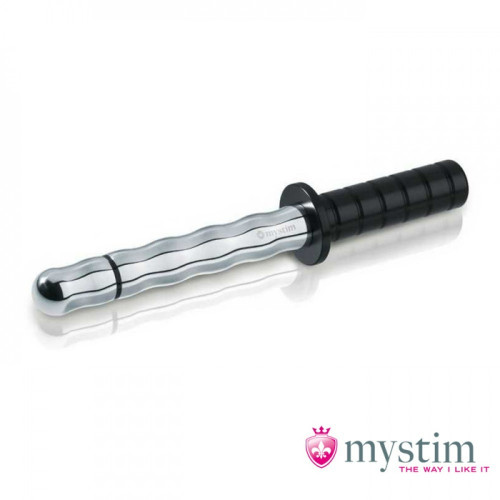 Фаллоимитатор для электростимуляции с рукоятью Mystim, серебряный, 28 х 3 см