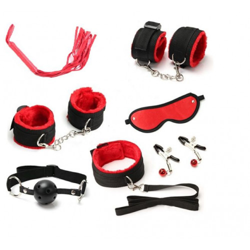 Даний набір для любовних ігор містить м'які наручники та поножі з регулятором розміру, маску для очей, та такий ж м'який нашийник. Хутряна обшивка ніжно стосується шкіри, не дратує її. Відмінним доповненням до набору служать батіг, та затискачі для сосків.