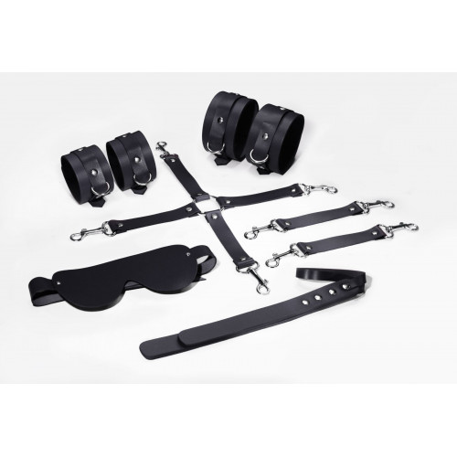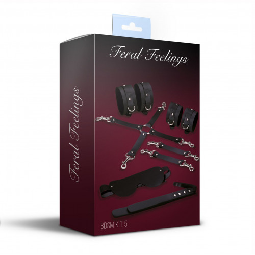 Набор Feral Feelings BDSM Kit 5 Black, наручники, поножи, коннектор, маска, паддл