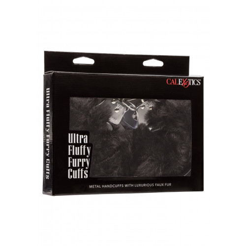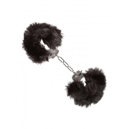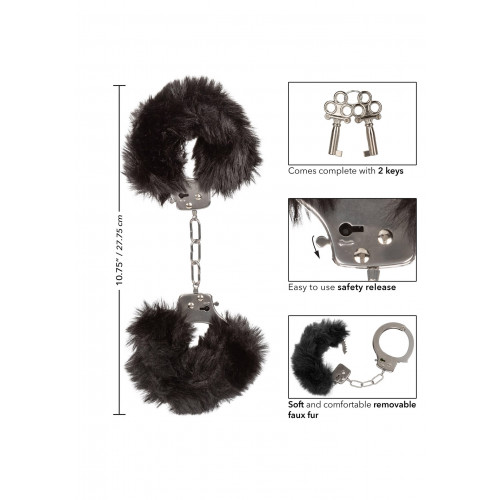 Наручники с мехом, металлические California Exotic, черные