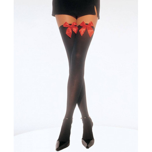 Непрозрачные высокие черные чулки с красным бантом Leg Avenue