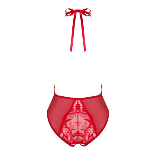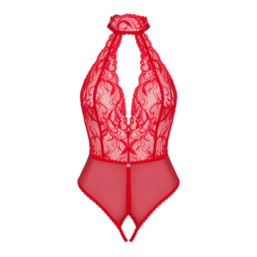 Боди с воротником халтер Obsessive Dagmarie и открытым доступом, красный, XS/S