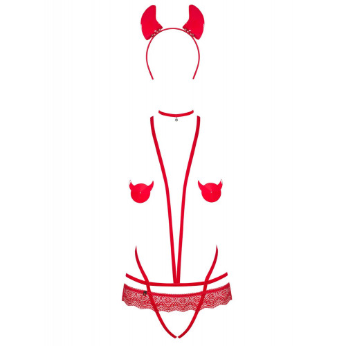 Еротичний костюм чортика зі стреп Obsessive Evilia Teddy Red