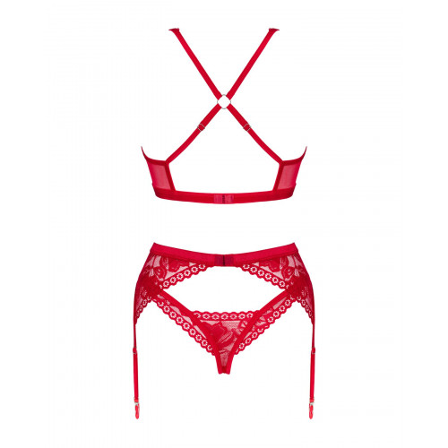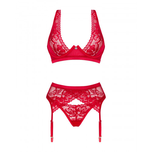 Кажуть, що немає нічого сексуальнішого за червону білизну! Пропонуємо купити комплект білизни Obsessive Lacelove Cupless 3-pcs Set, що складається з бюстгальтера, стрінгів та пояса для панчіх. Цей комплект створений для того, щоб підкреслити вашу сексуальність та надати впевненості у власній привабливості.