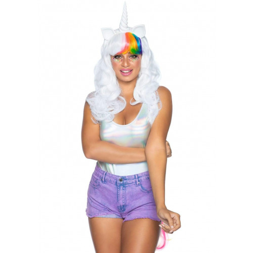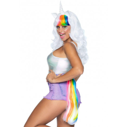 Набор из двух предметов для волнистого радужного единорога с париком и хвостом Leg Avenue с радужными кудрями создаст легкий волшебный образ практически на любой вечеринке.