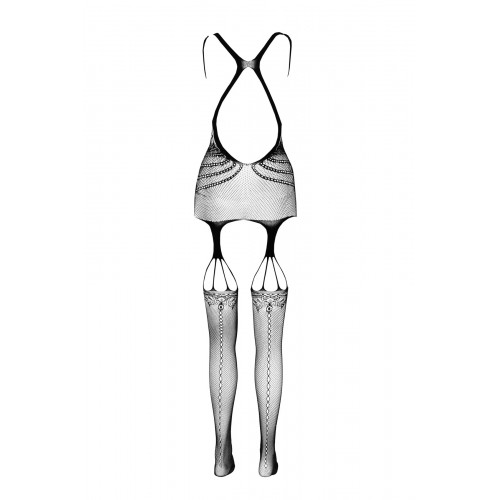 Комбинезон сетка с открытым доступом и имитацией чулков BS070 black