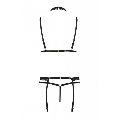 Комплект білизни з чокером та відкритим доступом SHELLY SET Black - Passion