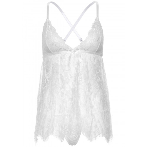 Пеньюар Leg Avenue Floral lace babydoll & string White L