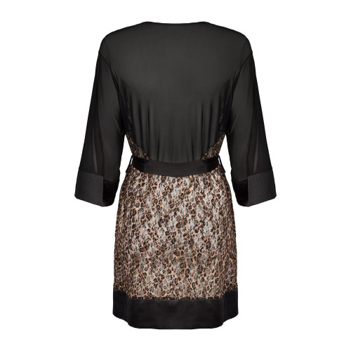 Жіночий халат класичного крою allunes глибокого чорного кольори в поєднанні з елегантним чуттєвим леопардовим принтом.