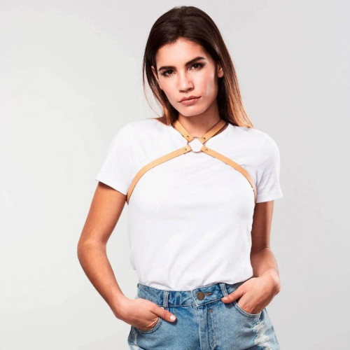 Портупея на зону декольте Bijoux Indiscrets Maze-Cross Cleavage, екошкіра, Бежева