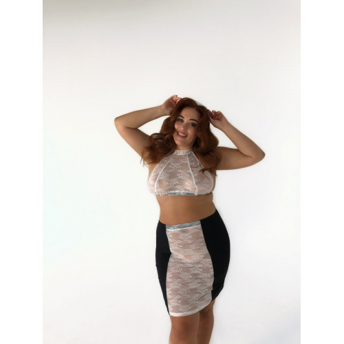 - Мереживний білий топ з еластичною резиночкою під грудьми;